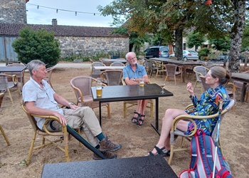 | Sunday 24th August Quiet day with J going for a walk in the afternoon. R joined her for a beer at La Guinguette. Lots of English people there as there was a wedding on and the guests were there for refreshments. |