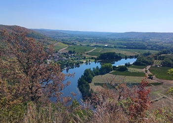 August A lovely walk up the hill from our Airbnb, along some small roads and back to the village. A well deserved beer at La Guinguette. |
