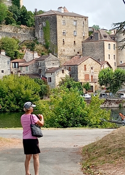 August P and A picked us up and we went to Luzech. Then a walk along the river and then up into the hills above the town. To Site archeologique de l'impernal, medieval ruins and lovely views though Ron didn't enjoy the walk down! Lovely lunch at Uxello Restaurant. Back to Albas and a beer in the square at Le Promenade du Limau. |