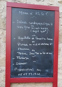 August Moved out of our Airbnb and drove to Rocamadour. Too early to check-in so went for a beer, then took the lift to the top and walked back. Checked-in to Du Lion d'Or Hotel. Small room but adequate. Had the fixed menu at their restaurant in the evening. |