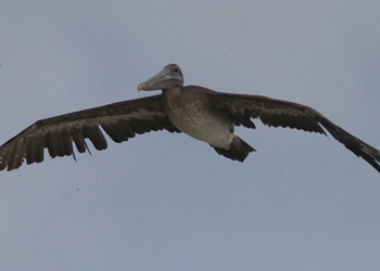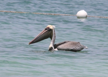 | Brown Pelican in flight... | ...and swimming |