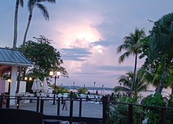 9th September Buffet breakfast at the main dining area, Bayside Restaurant. Lots of cattle egrets and one snowy egret around trying to steal the food off the diners plates until the staff put out a table full of food for them to eat. Apparently they preferred sausages and bread! At 09.00 we took the orientation tour. Tried to change rooms as our patio was near to the main road and quite noisy but was too expensive so we decided to stay put. An hour on the beach with 'cocktail of the day' from Perla Bar. Lunch Bayside. Dinner at Barefoot restaurant, R had swordfish and J seafood bisque and snapper fillet. |