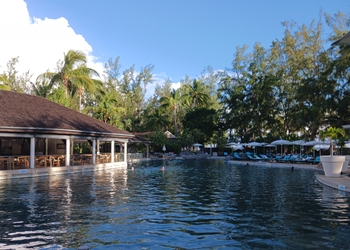 A bit of rain in the morning. Quiet day on the beach and swimming/snorkeling and a dip in the swimming pool in the afternoon. Dinner at La Plage restaurant. Julie had tuna three ways as a starter, red snapper for main and creme brulee for dessert. Ron had lamb shank and ice cream. Nice bottle of red wine as well.