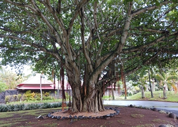 | The Tamassa Hotel entrance | Magnificent old tree at the entrance |