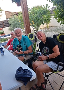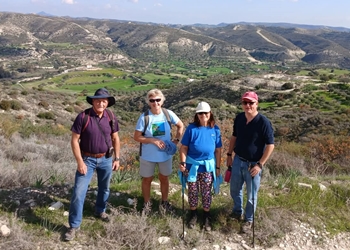 | 1st January - Kalavassos After breakfast we all (except Ron) set off on one of Jenny's hikes. Nice and warm weather and we did 10 km. Back to ours for food and drinks joined by Mags and Steve. Lovely way to start the year. |