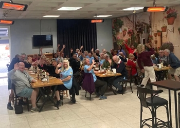 | Sunday 11th After breakfast we were expecting a recovery walk but as the hares could not agree on a route, so we just ended up walking across to the restaurant nearby for a drink. |