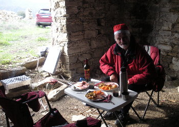 Christmas Eve is spent at Tricia's, celebrating Ann's birthday, Ann and John's wedding anniversary and Frank and Jenny's wedding anniversary. It's Christmas Day and we are breaking with tradition by not having the normal lunch. We have decided to head out into the country, do a bit of a hike and then re-heat a pre-cooked Christmas dinner on the BBQ. We head out to a deserted village in the hills above the village of Kalavasos which we knew would be OK for us. The weather stayed kind with no rain and even some sunshine. We did decide to eat "indoors" as we did have a bit of a fresh breeze blowing through.